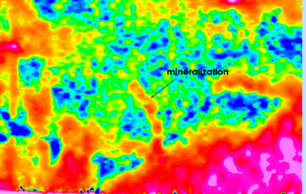 - IP effects, especially small pore sizes (fine grained disseminated mineralization)