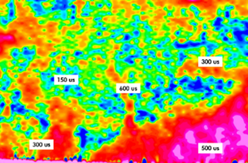 Figure 5 – Time constants for the survey. Mineralization has a time constant of 600 us.